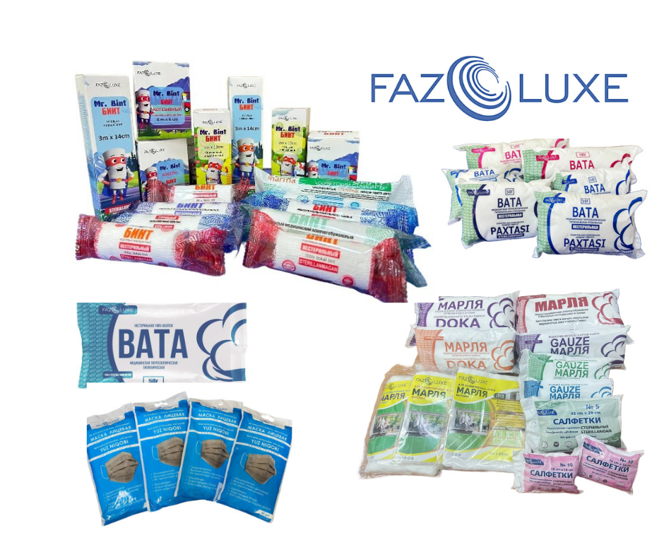 BIZ HAQIMIZDA “FAZO-LUXE” korxonasi 2016 yildan buyon tibbiy buyumlar ishlab chiqarish bilan shug’ullanib kelayotgan Respublika miqyosidagi yirik ekport qiluvchi korxonalar tarkibiga kiradi. Korxonamizda bint, marli, bahila, maska mahsulotlarining ko’pgina turlari ishlab chiqariladi. 350 ish nafardan ziyod ishchi kuchini o’z ichiga qamrab olgan tashkilot bugungi kunda yanada ishlab chiqarish jarayonini kengaytirib kelmoqda.